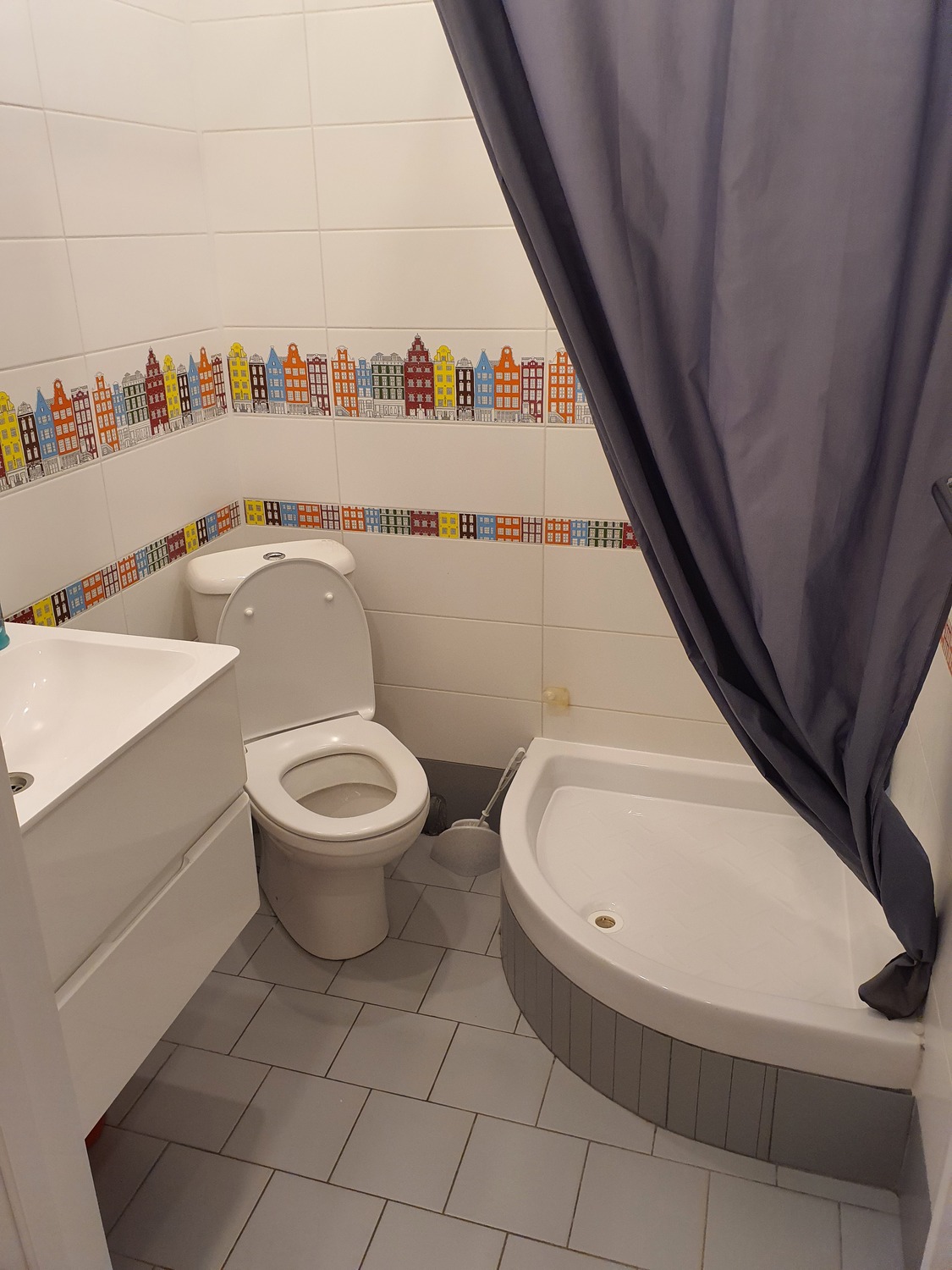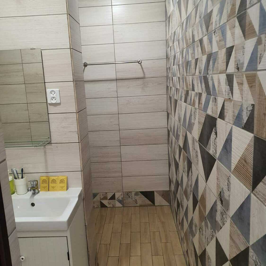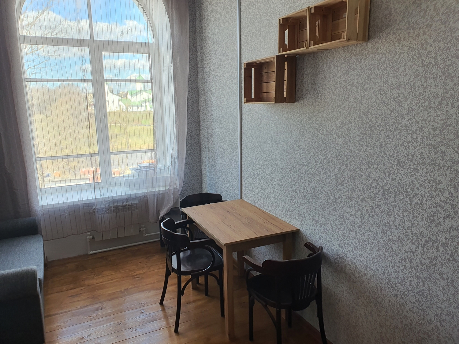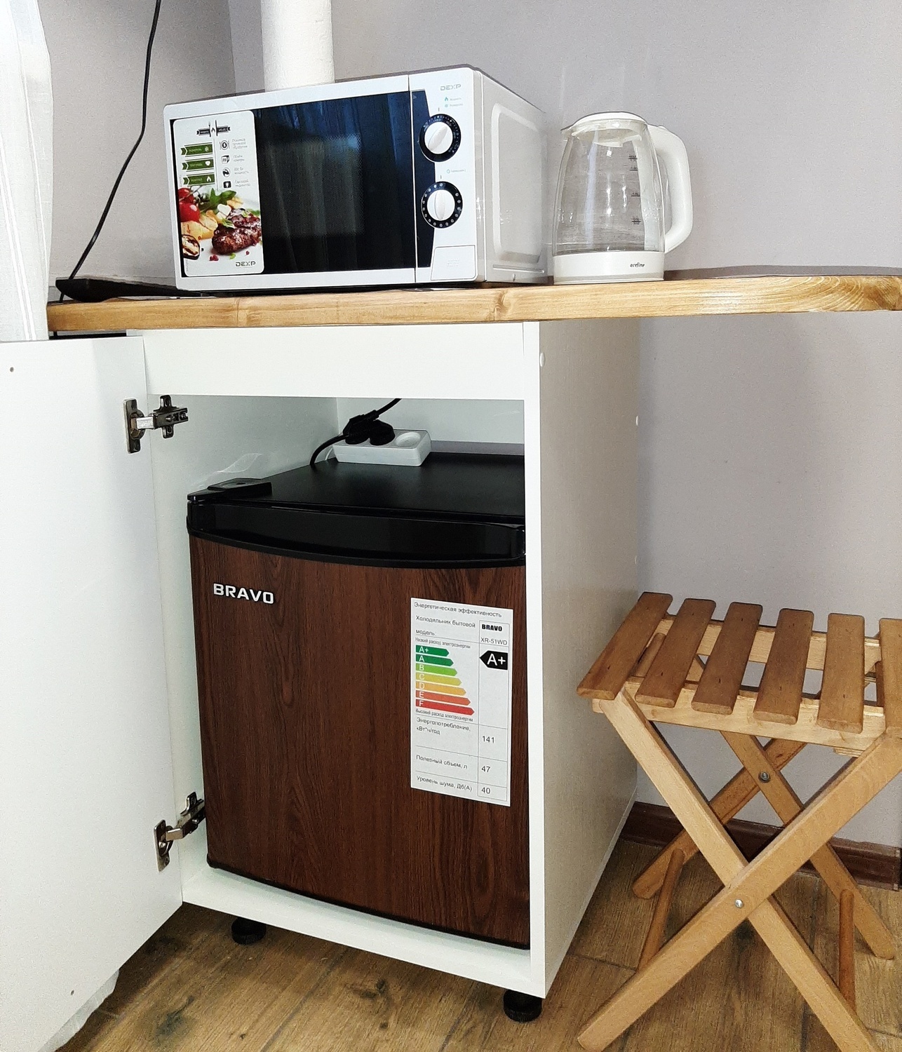 Студия с двухъярусной кроватью, отдельной ванной комнатой, микроволновкой, холодильником на 1 этаже. Площадь 15м2. Кухня отсутствует.