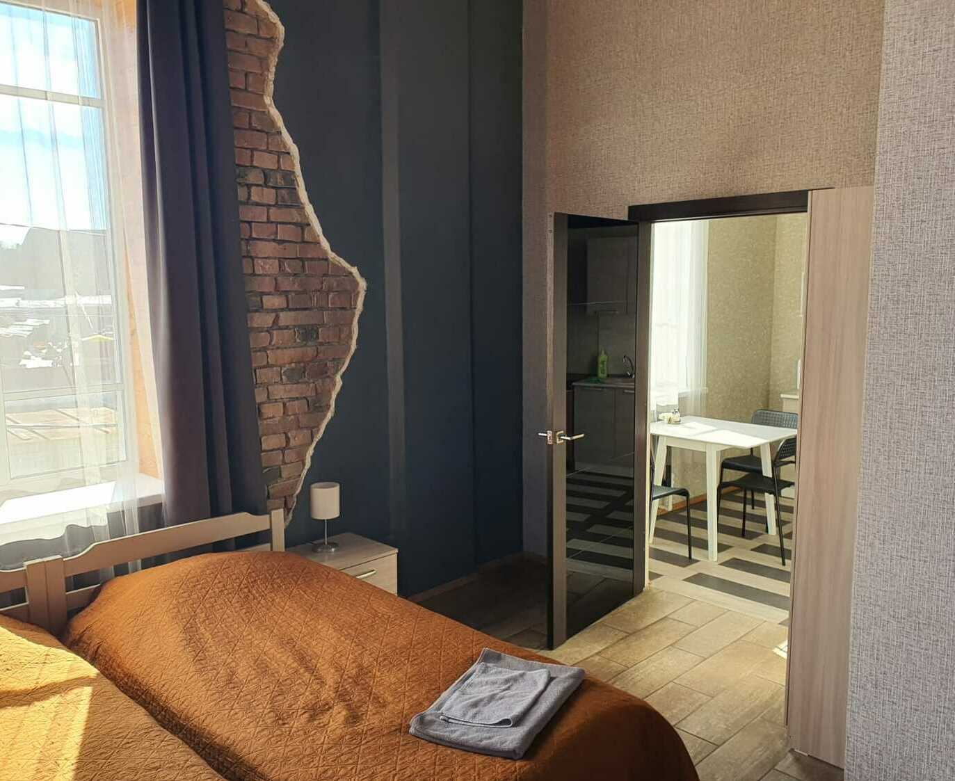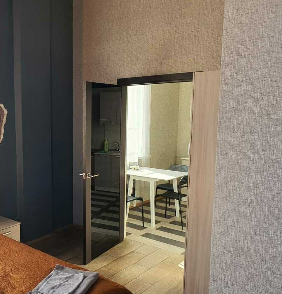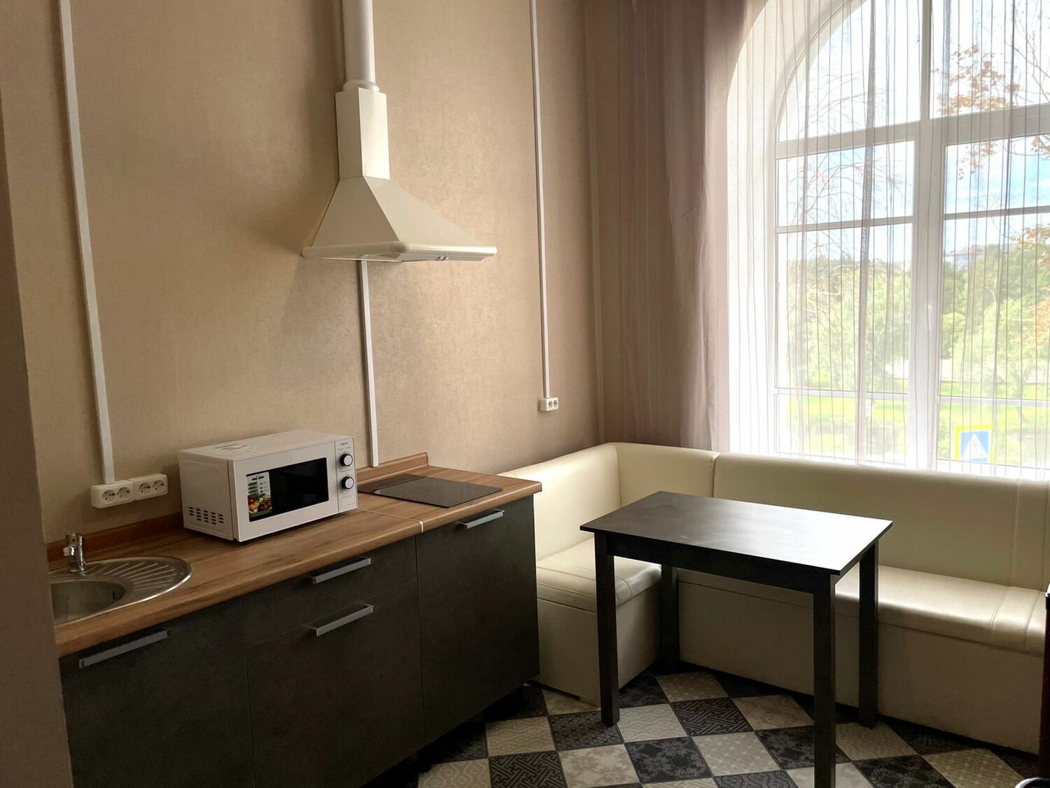 Однокомнатные апартаменты на 2 этаже. Одна двухспальная кровать, санузел, кухня со всем необходимым для комфортного проживания. Площадь 32м2. Вид на Кремль и двор.
