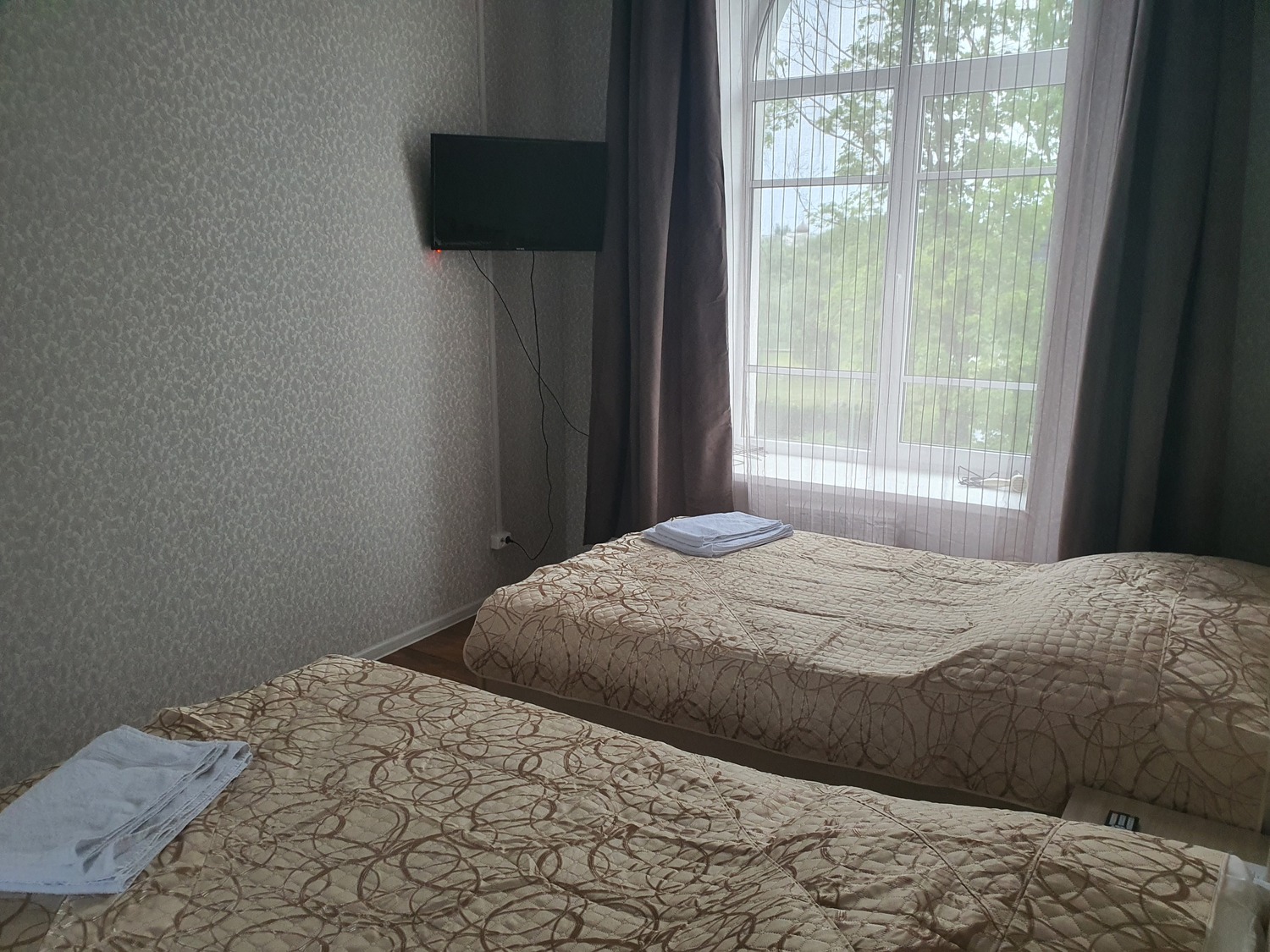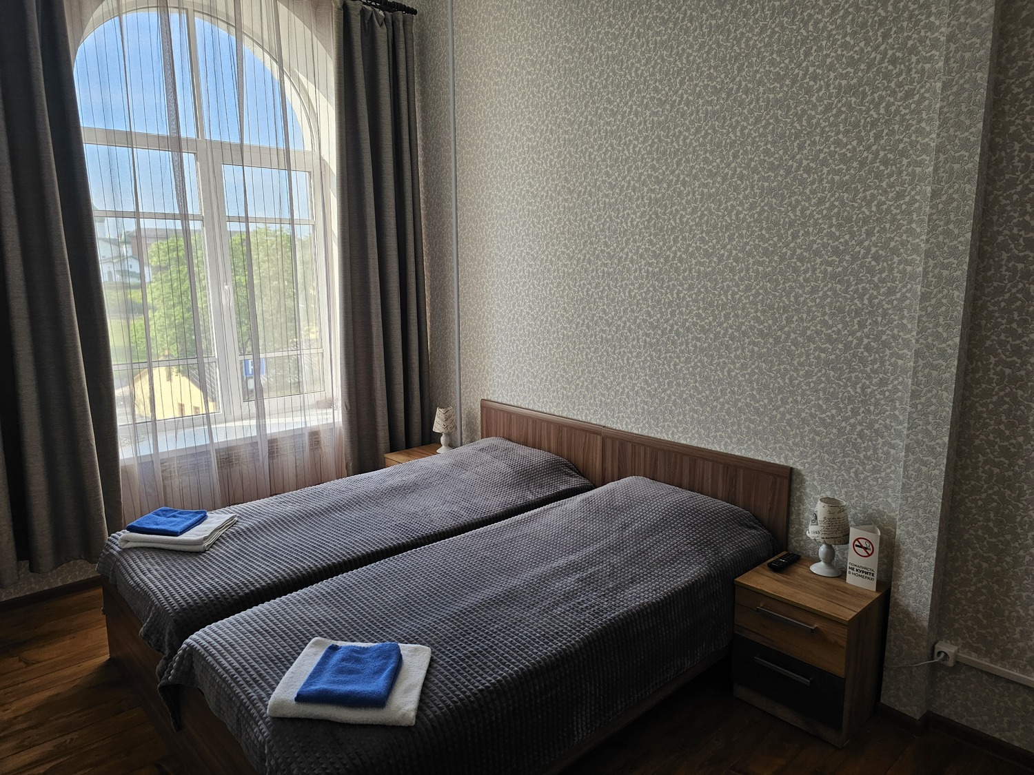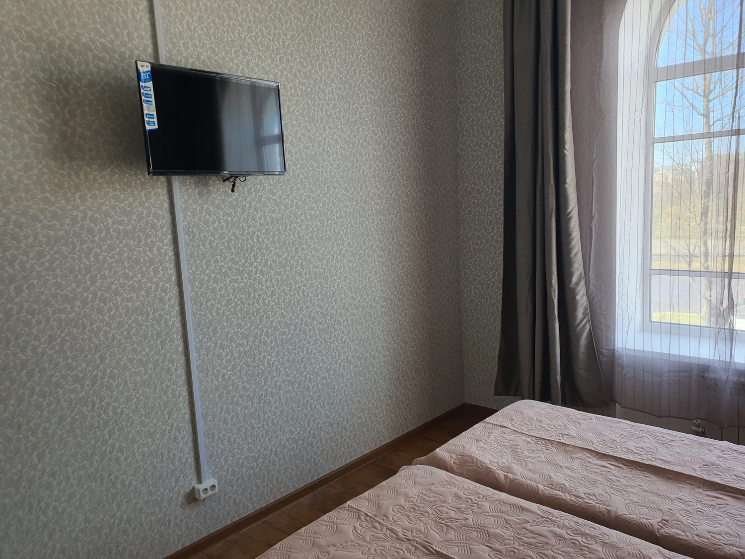 Номер с двухъярусной кроватью , отдельной ванной комнатой, микроволновкой, холодильником на 1 этаже. Площадь 15м2. Вид на Кремль и набережную.