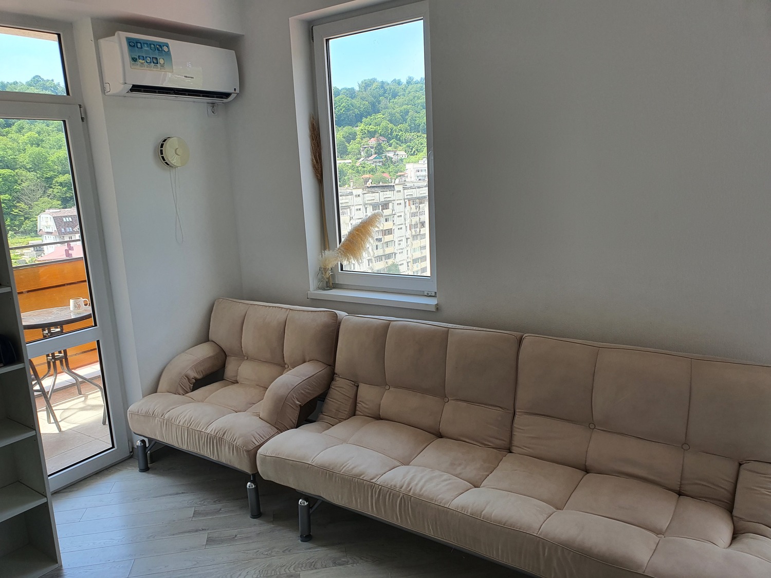 Уютные апартаменты расположены в 10 минутах от городского пляжа. 11 этаж 12 этажного дома . Прямой вид на море и горы. К услугам гостей все для комфортного проживания. 2х спальный диван, кровать , полностью оборудованная кухня.