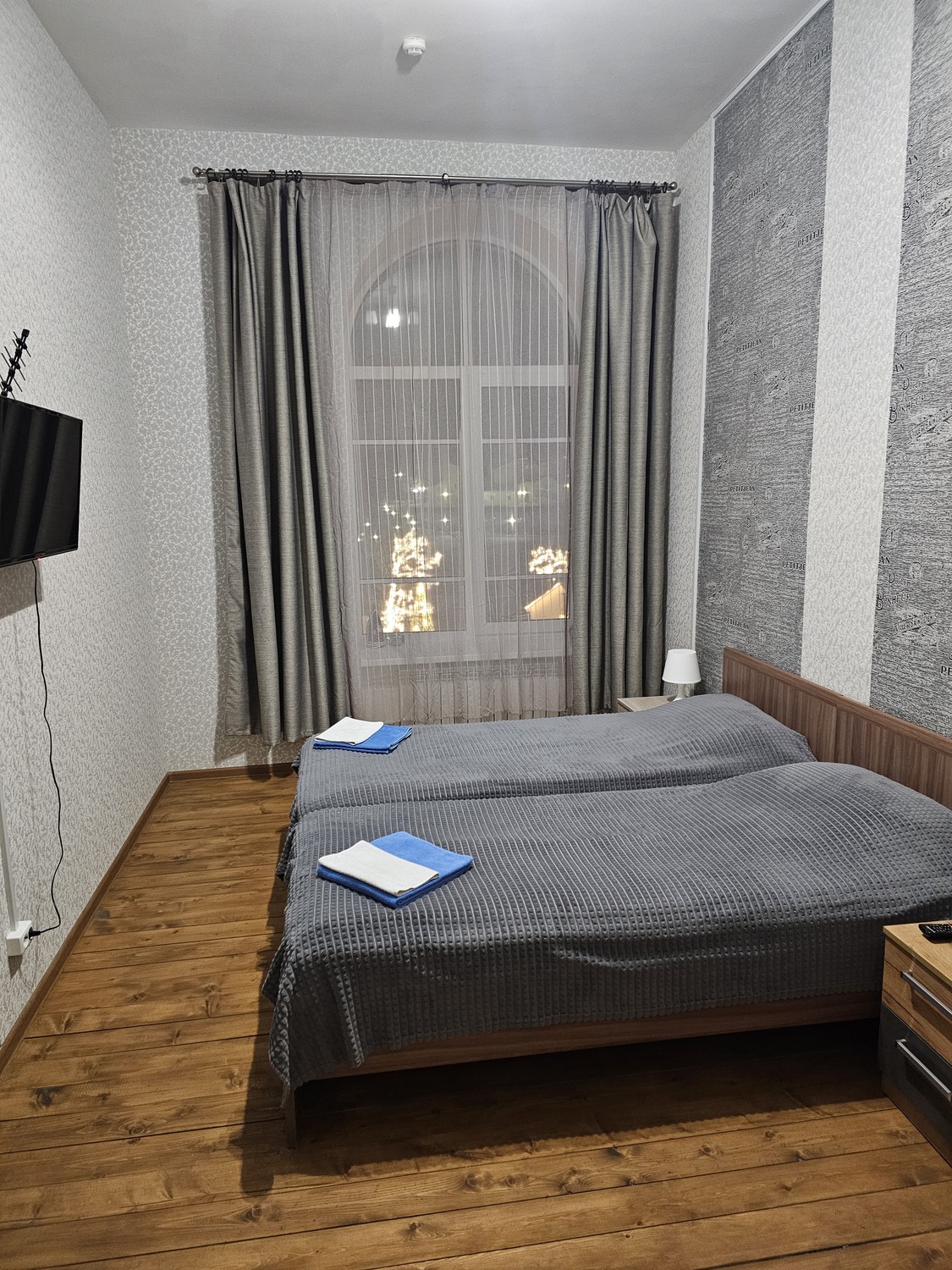 Номер с двухъярусной кроватью , отдельной ванной комнатой, микроволновкой, холодильником на 1 этаже. Площадь 15м2. Вид на Кремль и набережную.