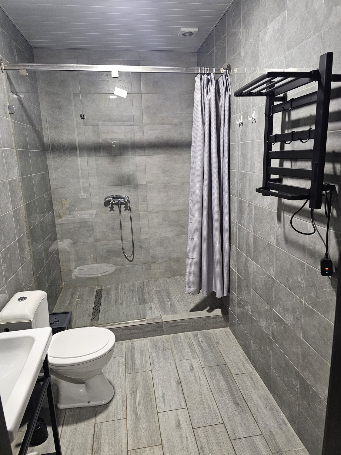 Однокомнатные апартаменты на 2 этаже. Две односпальные кровати, диван, журнальный столик и ванная комната, кухня со всем необходимым для комфортного проживания. Площадь 40м2. Апартаменты оборудованны кондиционером.